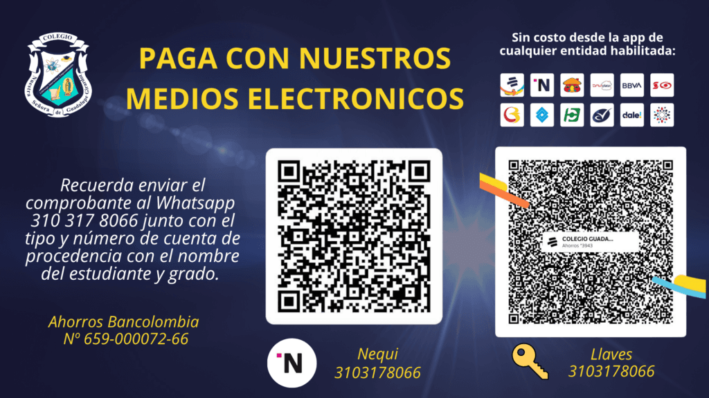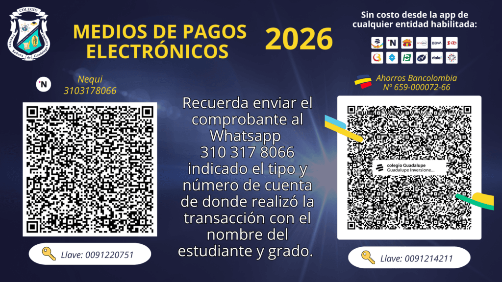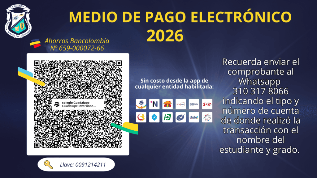 Luego de haber realizado la transacción deberá enviar el comprobante al WhatsApp 310 3178066, indicando nombre del alumno y grado para generar el descargo del concepto y enviarle a vuelta un recibo institucional